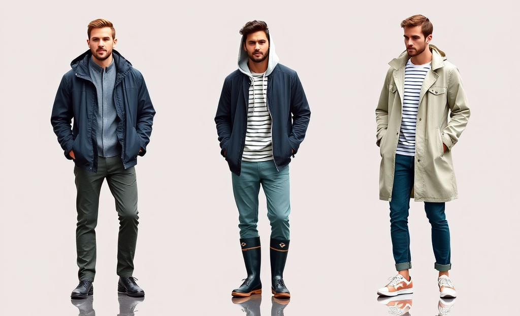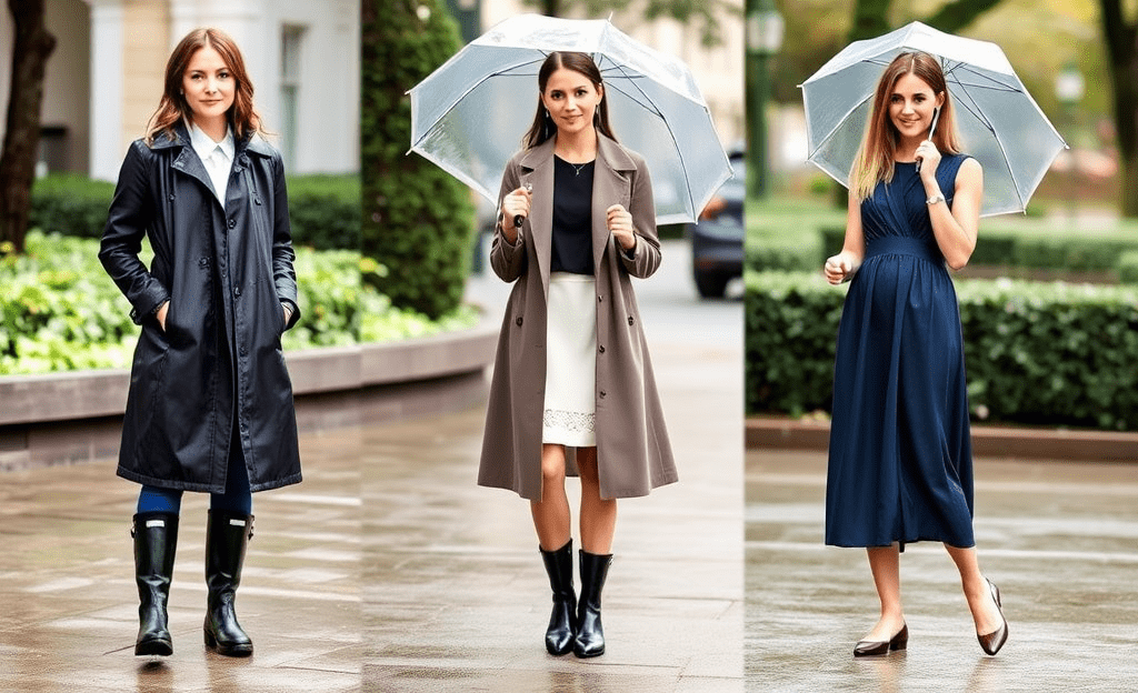 *Water-resistant blazer, hoodie, rain boots, stylish yet practical.