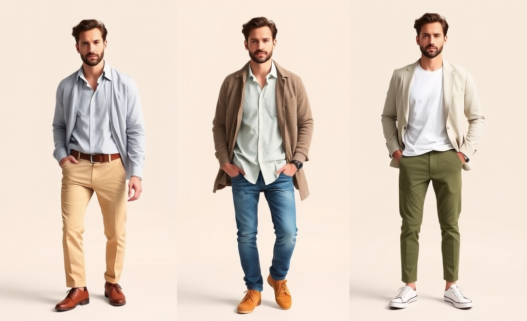 *Light long-sleeve shirt with beige chinos and a thin cardigan for a comfortable, stylish look.