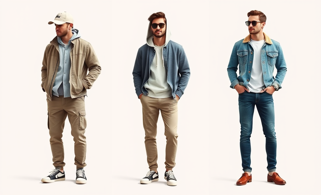 *Casual hoodie, chinos, sneakers, sunglasses
