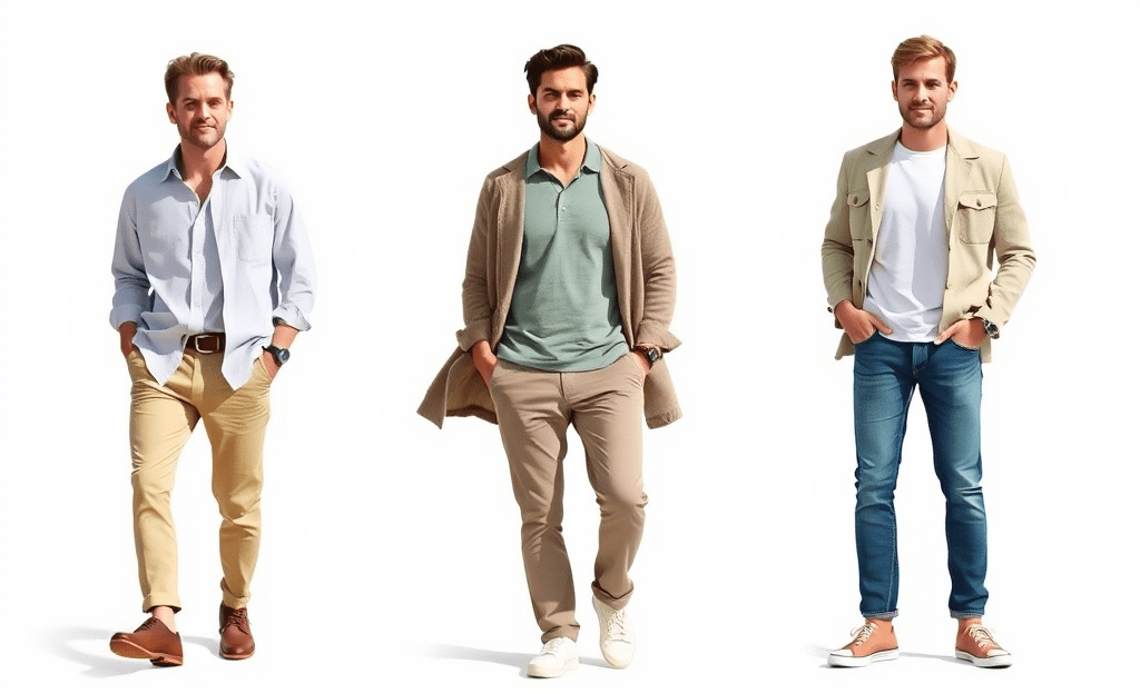 *Casual polo shirt paired with chinos, and a thin overshirt for layering, perfect for comfortable outdoor activity.