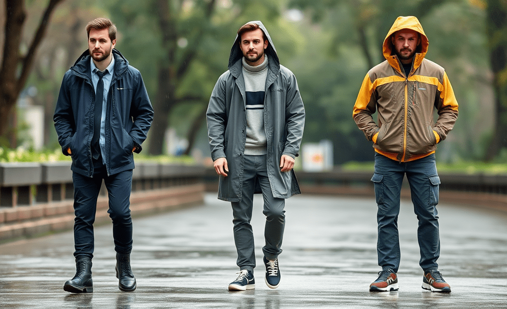 *Raincoat, thermal sweater, waterproof sneakers