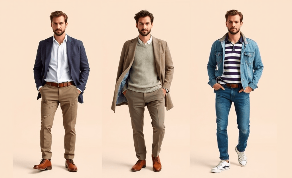 *Light long-sleeve shirt with chinos, paired with a casual blazer for a smart yet relaxed look.
