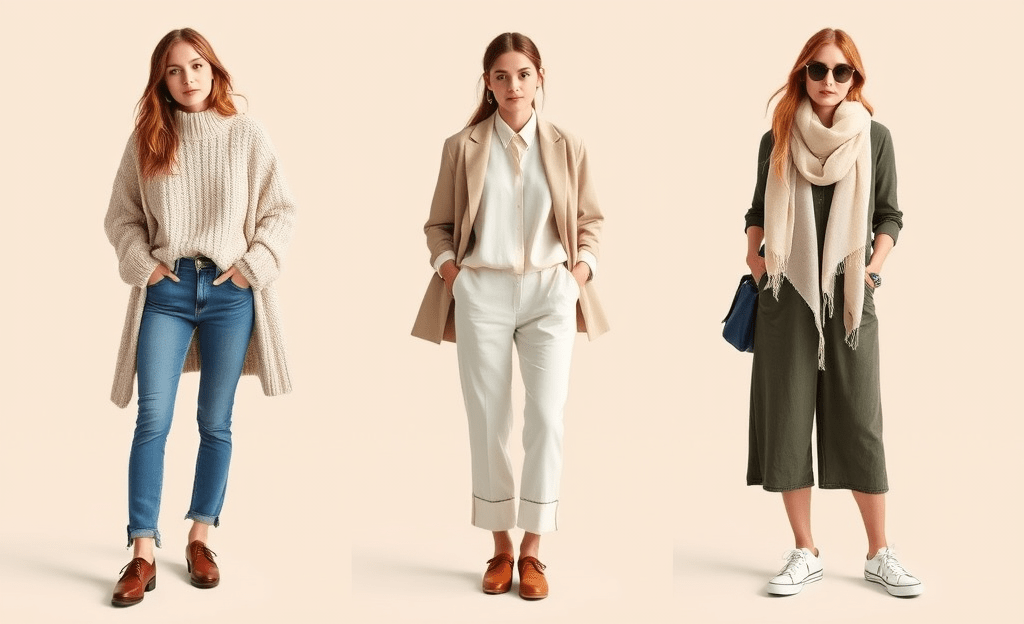 *Thin knit sweater with tailored trousers, complemented by a lightweight jacket for a comfortable style.