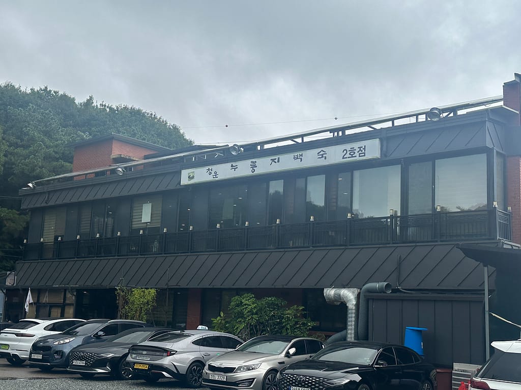 가게 앞 전용 주차장이 넓어 초반엔 한가했습니다. 다만 저녁 피크엔 만차가 되니 17시 전 도착을 추천해요. 위치는 본점과 가까워 네비에 ‘청운 누룽지백숙 2호점’을 찍으면 바로 찾아가요. 외관은 2층 구조라 단체도 수용 가능했고, 이날은 2층으로 안내받았습니다. 웨이팅은 없었고 좌석 간격이 넓어 편히 먹기 좋았어요. 아래 사진이 외관과 주차 상황입니다.