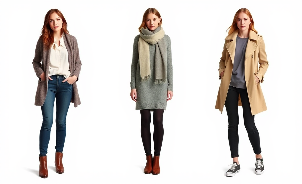 *Sweater dress with a light scarf, tights, and ankle boots for warmth and elegance.