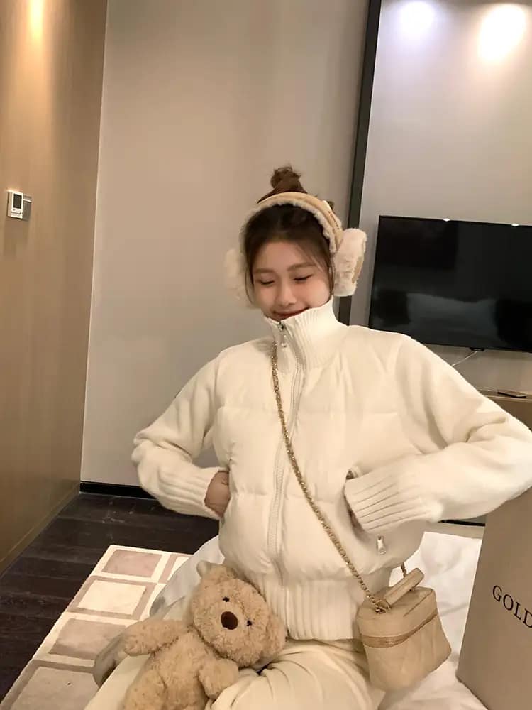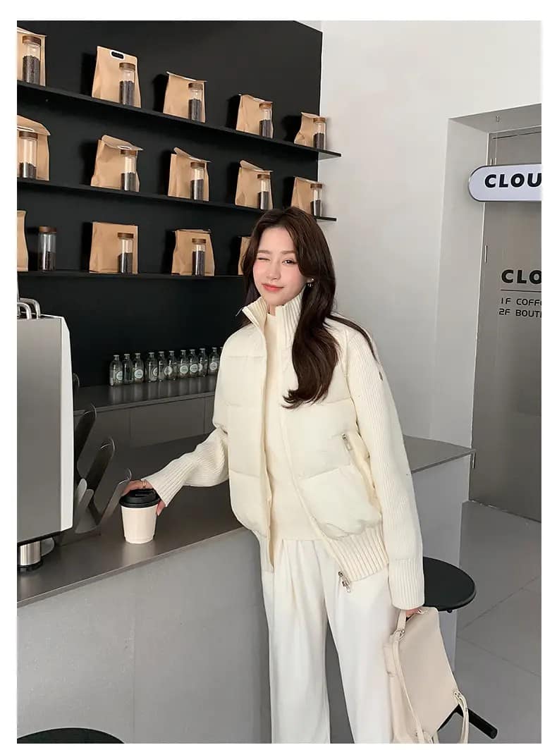 화이트 패딩은 니트와 팬츠를 매치해 미니멀한 겨울룩을 완성할 수 있고,
