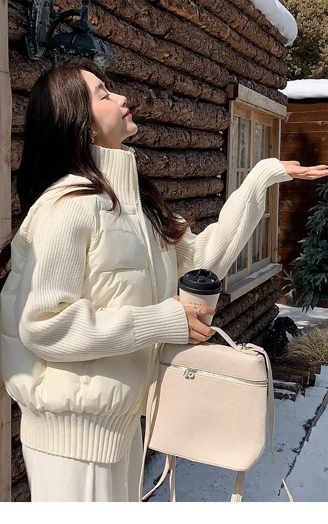 화이트 패딩은 니트와 팬츠를 매치해 미니멀한 겨울룩을 완성할 수 있고,