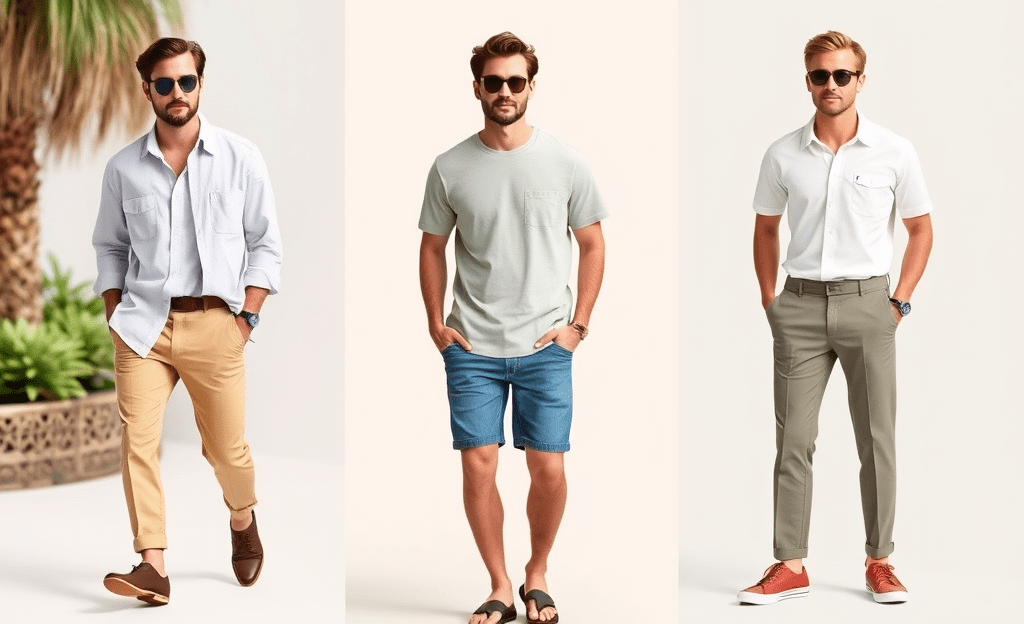 *Polo shirt paired with lightweight trousers for a smart-casual style.