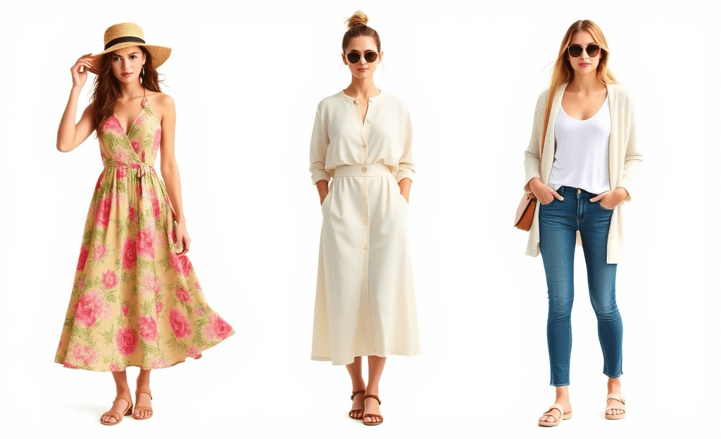 *Flowy sundress with a straw hat for a feminine touch.