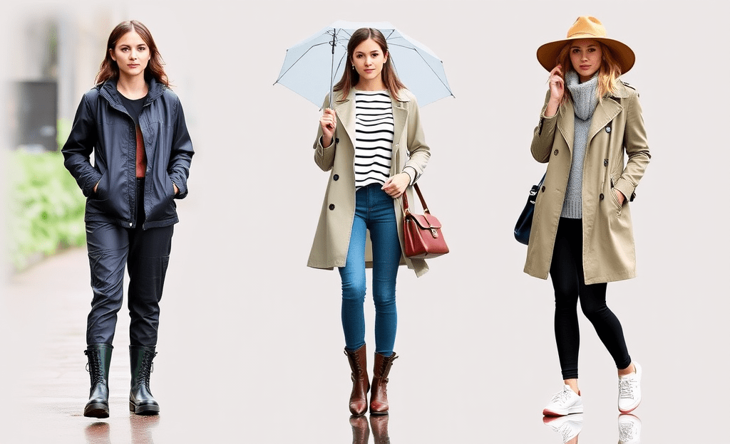 “비 오는 날에는 가볍고 방수 가능한 재킷이나 우산이 필수입니다. 속옷에는 통기성이 좋은 긴팔 티셔츠와 편안한 긴 바지, 또는 레인 부츠를 매치하면 좋습니다. 머리에는 우산이나 방수 모자를 착용하고, 손목과 허리에는 방수 액세서리를 더해 스타일리시하면서도 실용적인 착장을 추천합니다.”