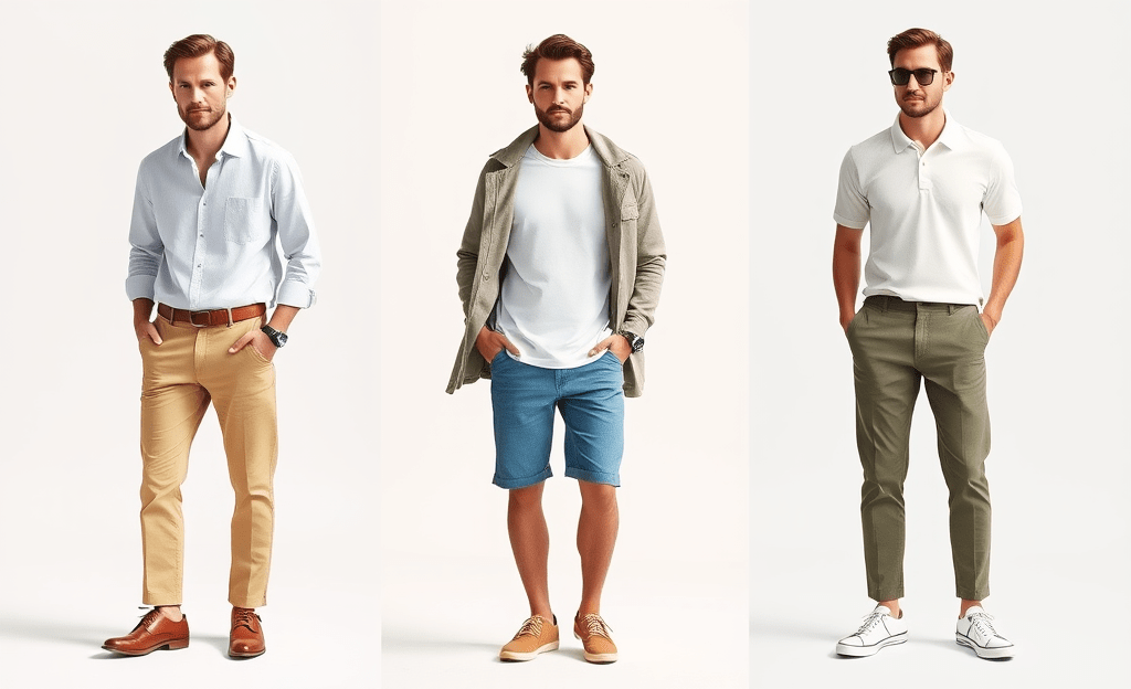 *Light, breathable long-sleeve shirt with chinos for a casual look.
