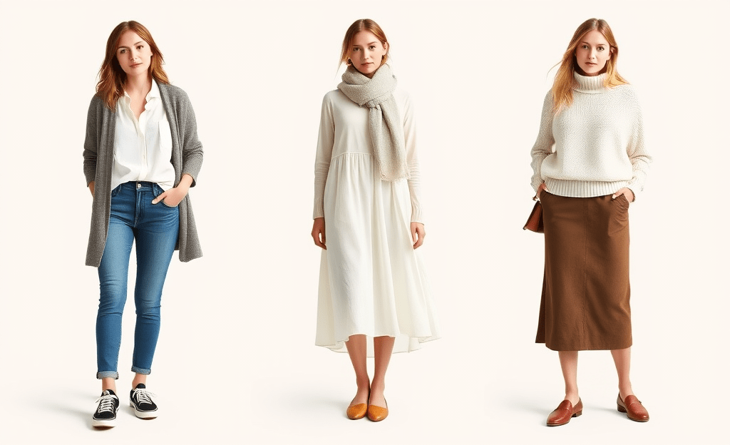 *Soft blouse with a cardigan and denim jeans, completed with sneakers for a casual outing.