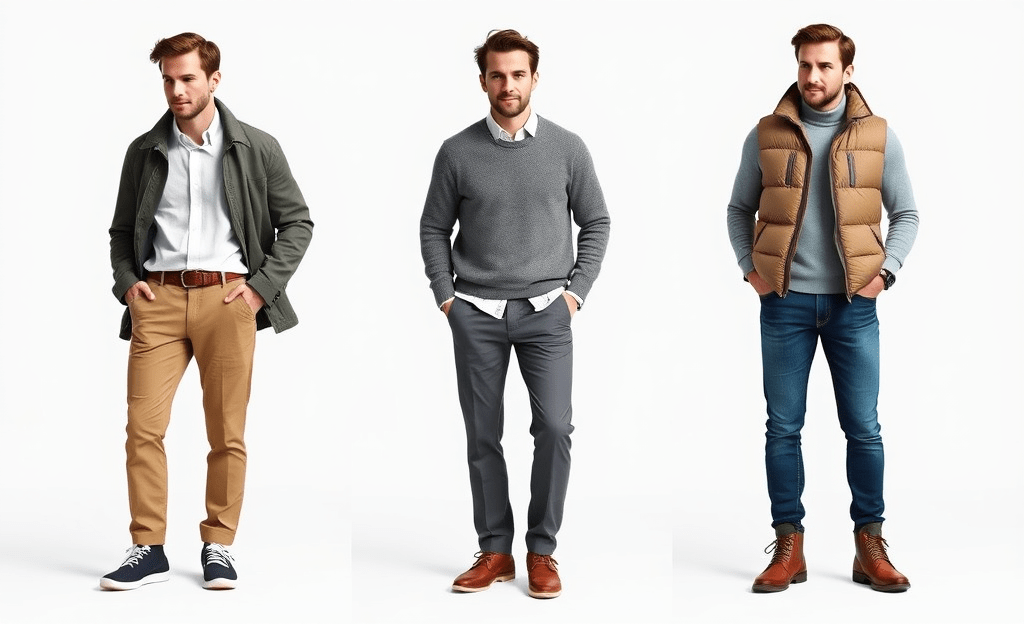 *Sweater layered over a collared shirt, paired with wool trousers and loafers for a smart casual style.
