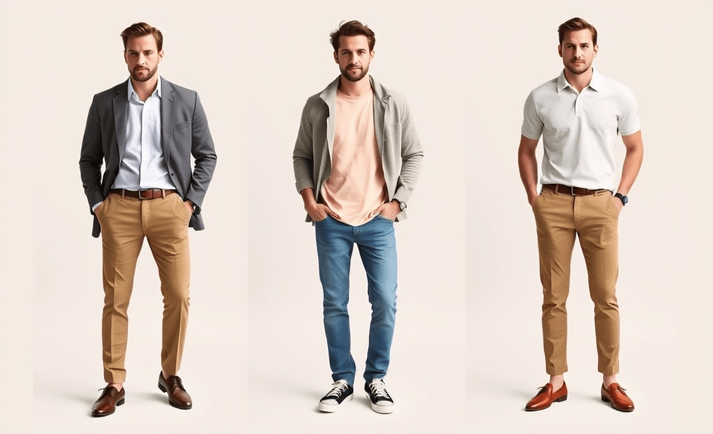 *Light long-sleeve shirt with a thin blazer, paired with chinos and loafers for a smart-casual look.
